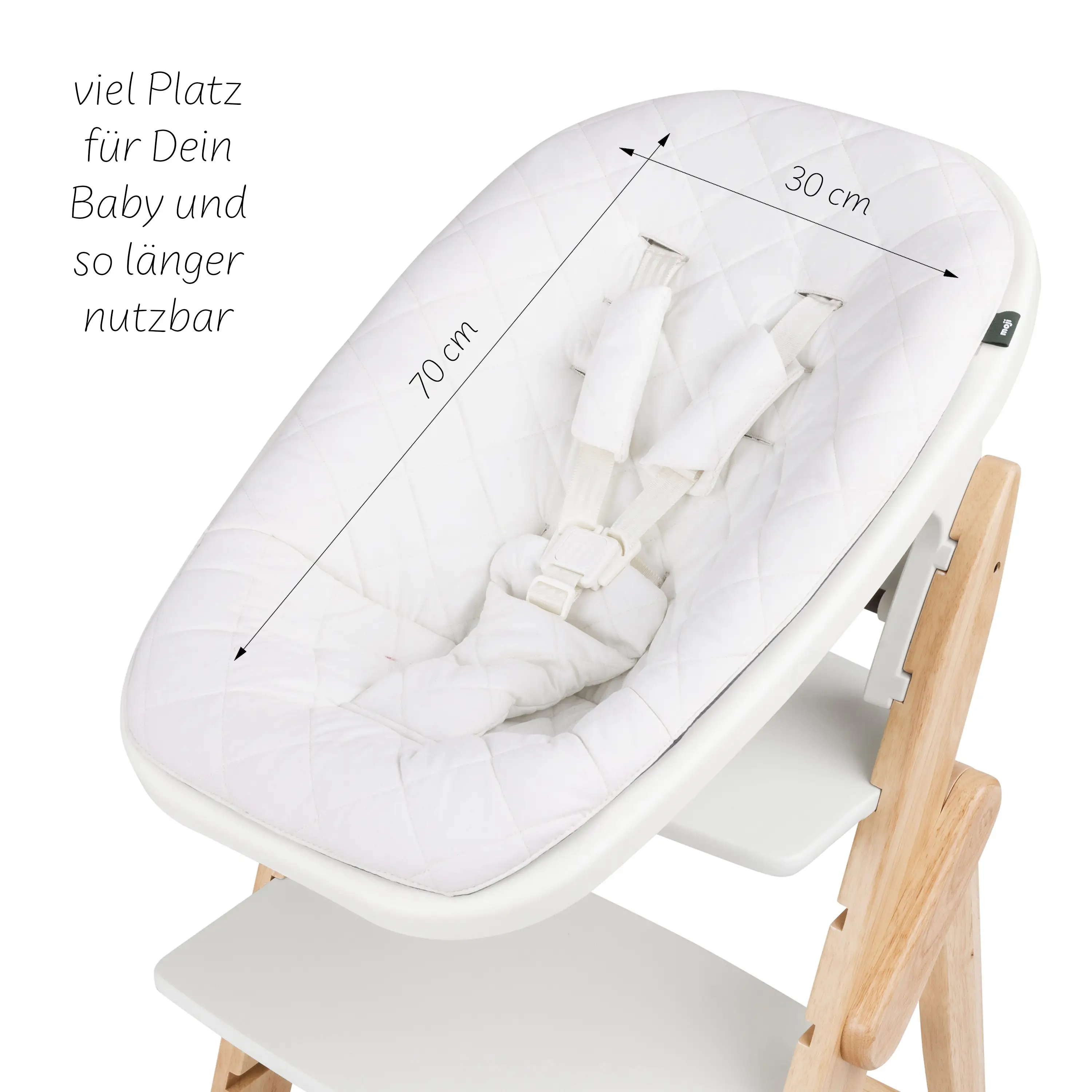 Der Newborn Aufsatz macht nicht nur optisch was her, sondern er ist auch optimal für die ganz kleinsten. Sie können direkt am Tisch mit bei sein. Der Aufsatz hat um Windel und Schulterbereich noch extra Polster. Der Einsatz kann gewaschen werden und ich finde das Baby liegt super angenehm drin. Dieser Aufsatz ist wirklich einer der Besten!